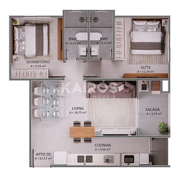55,00 m² de área privativa