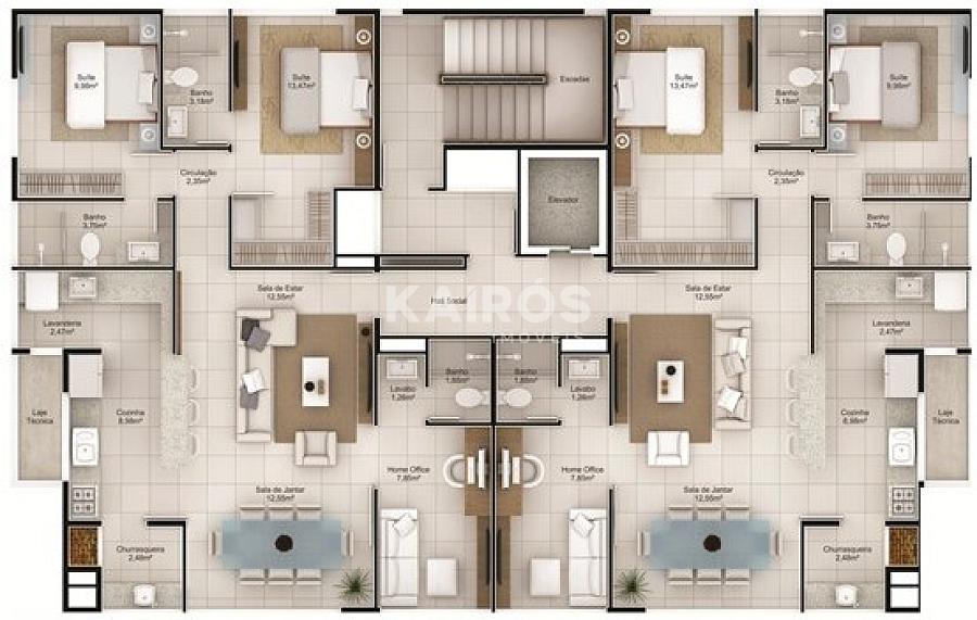 3 dormitórios (2 suítes)
